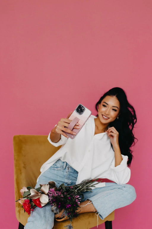 Enjoy a secure and comfortable grip on your phone with the finger strap that can be used with either hand!