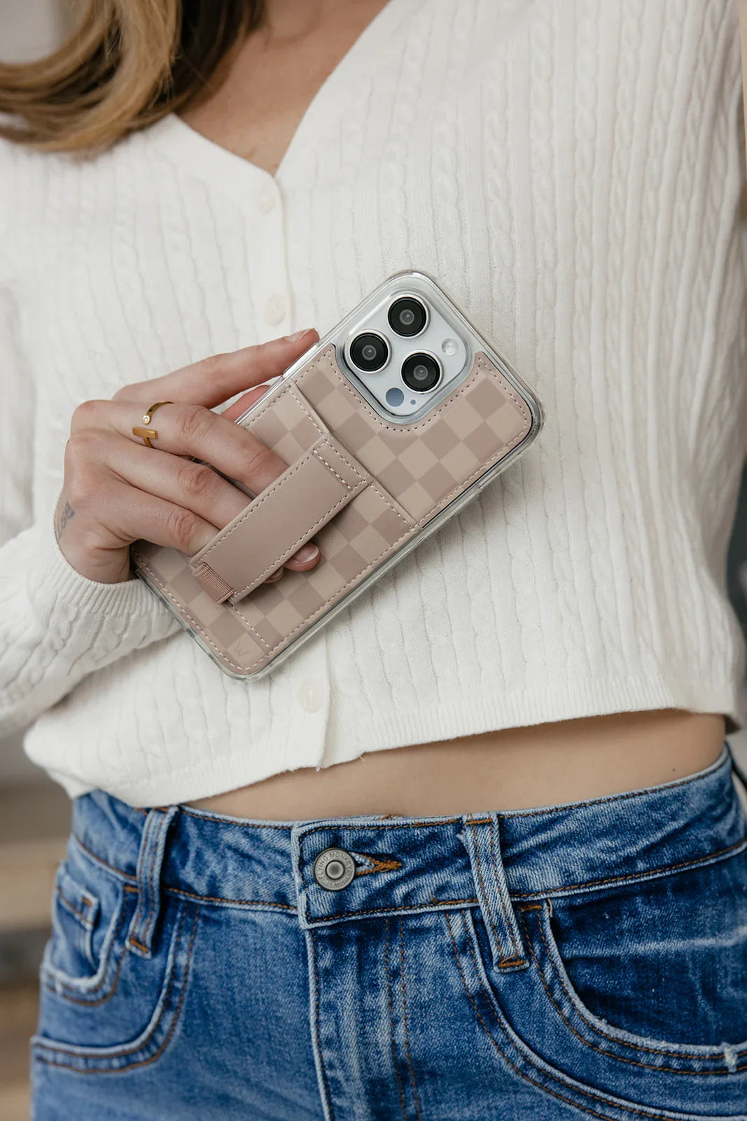 Enjoy a secure and comfortable grip on your phone with the finger strap that can be used with either hand!