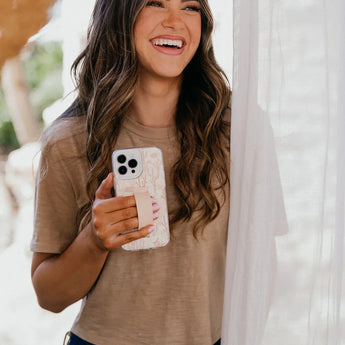 Enjoy a secure and comfortable grip on your phone with the finger strap that can be used with either hand!