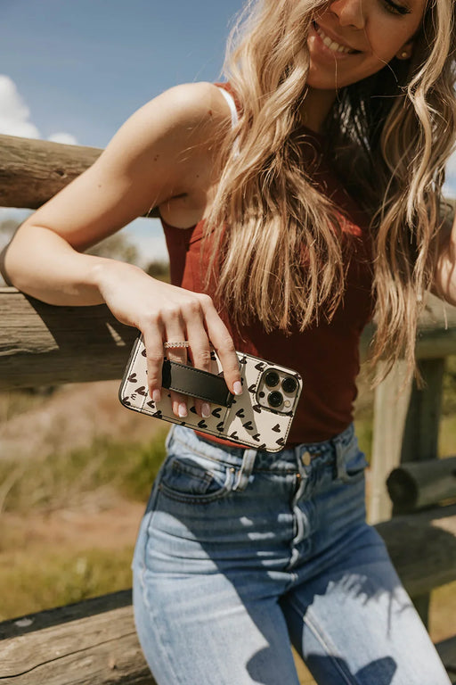 Enjoy a secure and comfortable grip on your phone with the finger strap that can be used with either hand!